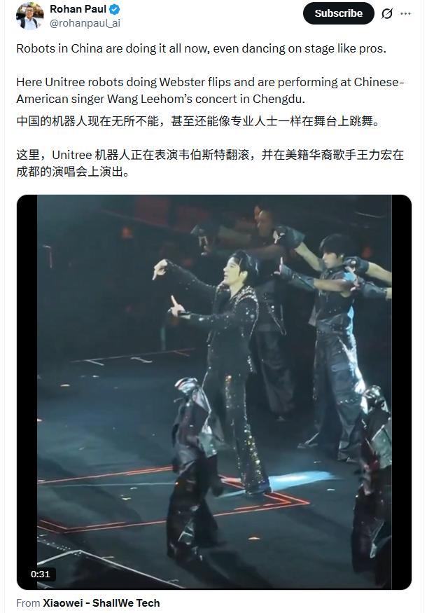 而且,王力宏演唱會上的機器人,也是宇樹公司的,這是民營企業,不是軍工企業,和平利用機器人才是我們的目的。