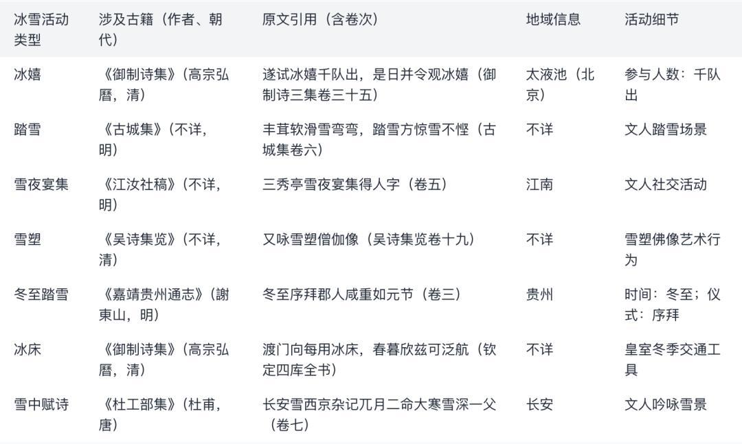 圖說:“深度研究助手”整理古人冰雪活動表