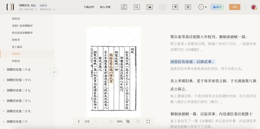 藉助 “識典古籍” ——這個由字節跳動與北京大學聯合打造的公益性古籍數字化平臺,通往古代冰雪世界的大門被輕易推開。平臺免費開放了40000餘部古籍,並配備了全文檢索、可溯源引文、跨書聚合等強大工具。