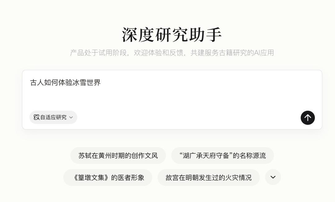 最有意思的,是它的 “深度研究助手”。這款基於字節跳動豆包大模型技術的AI智能體,能對平臺內所有古籍進行知識挖掘與深度語義分析,就像一位學識淵博的穿越導遊。你只需問它“古人如何體驗冰雪世界”,它便能在幾分鐘內,爲你整理出一份線索清晰、引證嚴謹的“穿越行程報告”。