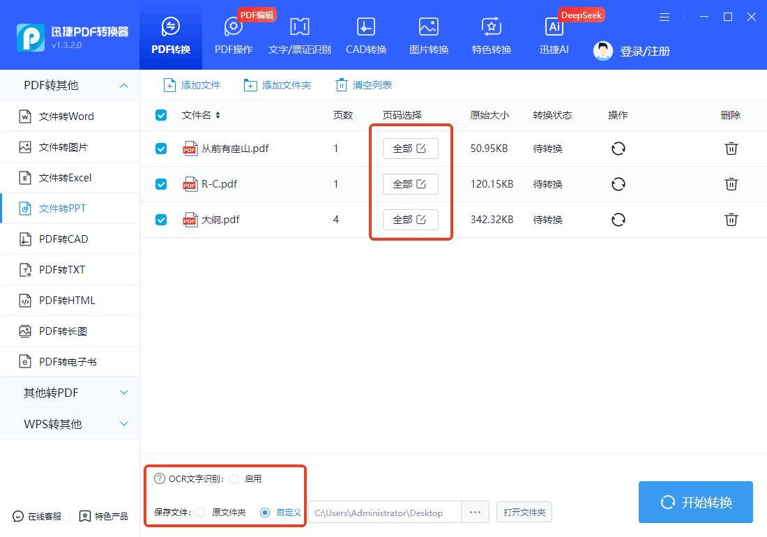 只需要導入PDF,設置輸出格式爲PPT,最後點擊轉換按鈕即可。