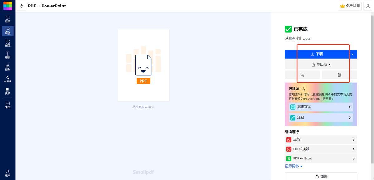 3、通過『Smallpdf』把PDF轉成PPT格式