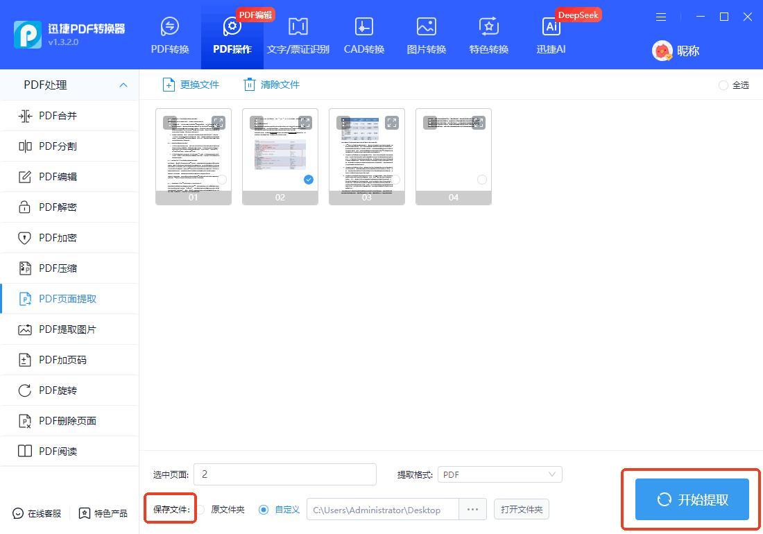 在保存文件處設置一下導出位置,最後點擊右下角的【開始轉換】,就能在指定文件夾中找到單獨提取出來的那頁PDF文檔了。