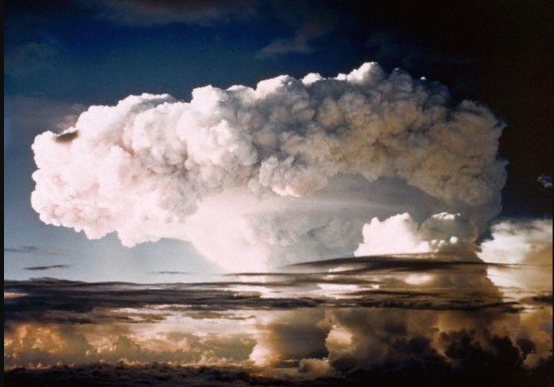 但隨着10月的某一天,一團更大的火球便在新地島的上空悄然升起了——那團火球的規模可不比那次的長春地的那團小,據說足有大地的半邊都能容得下的。爆炸瞬間產生的火球直徑達到八公里,那種亮度在千里之外都能看見。