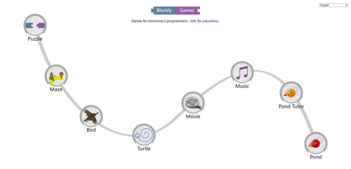 一款開源的編程工具,也是Google開發的圖形化編程庫,有一些闖關小遊戲,可以用來學習基礎編程概念,沒有課程和輔導,適合當啓蒙玩具玩,學習一些基礎的編程知識。
