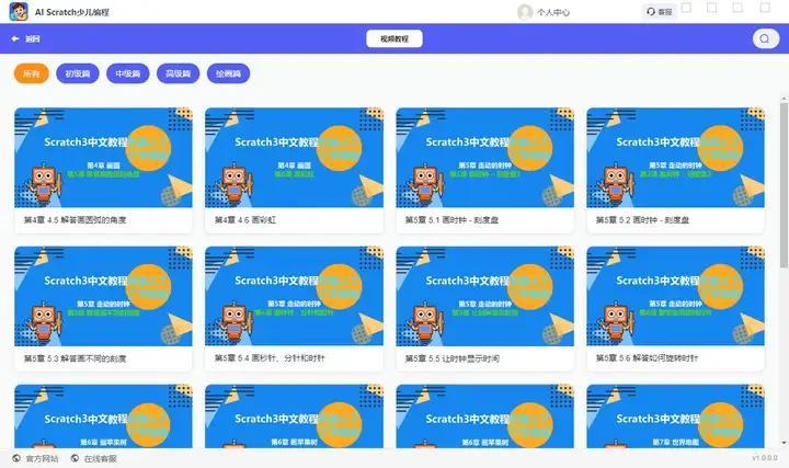軟件自帶完整的課程體系,從初級到高級,從入門級的讓角色動起來,到製作出一個完整的遊戲,自帶的課程由淺到深,孩子可以直接跟着課程學習。