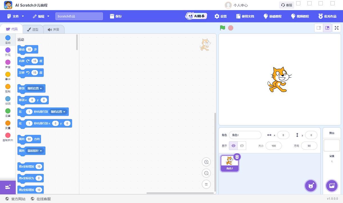AI Scratch少兒編程是一款少兒圖形化編程軟件,在官網下載可以安裝在本地,它可以通過拖積木塊來學習編程,好上手,零基礎也能使用,能夠用來做動畫、遊戲、互動故事,還有AI編程助手,可以解決在家學沒人教的問題。