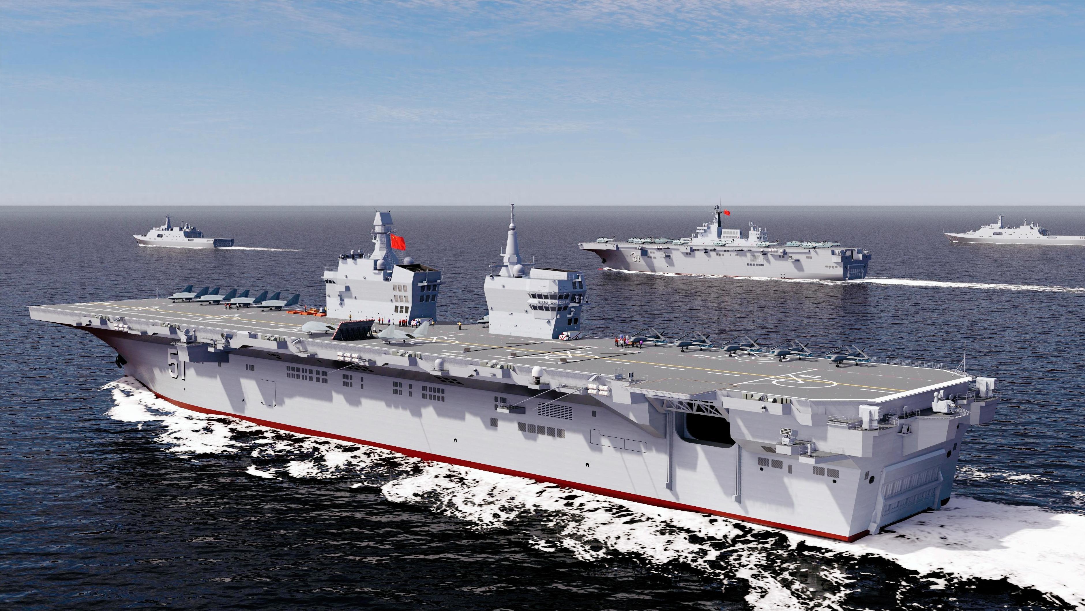 再往深裏看,076如果未來能搭配上國產的殲-35艦載機,那它就真的成了航母的完美搭檔。由航母的主力艦羣牽制敵方的主力,既能拿到制空權,又能通過076等艦載的無人機羣對敵方的漏洞和薄弱的空中防禦點進行有效的補充和飽和的打擊。