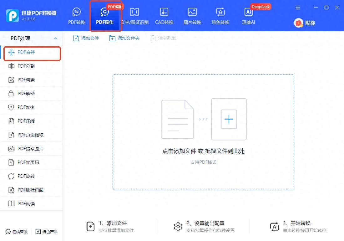 打開軟件,在首頁找到【PDF操作】,選擇【PDF合併】功能。