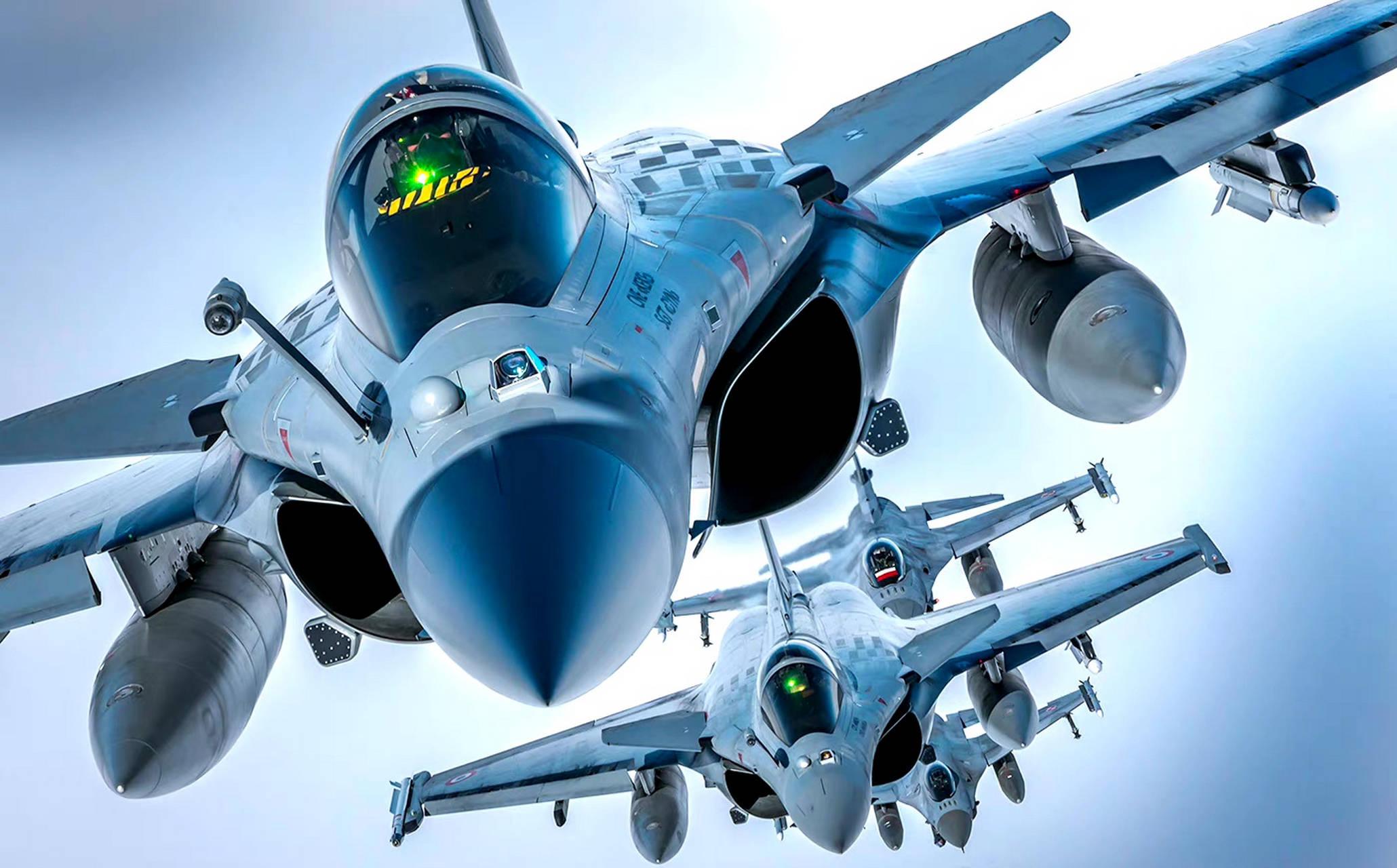 對比來看,殲-10CE的機頭空間更大,裝載的有源相控陣雷達在功率和搜索範圍上明顯佔了便宜。這波操作的結果就是,殲-10CE能更早地發現對方。在超視距空戰裏,早一秒看到對方,就意味着能早一秒鎖定並佔領攻擊位置。陣風還沒看清對手在哪,座艙裏的告警器估計就已經響成一片了。