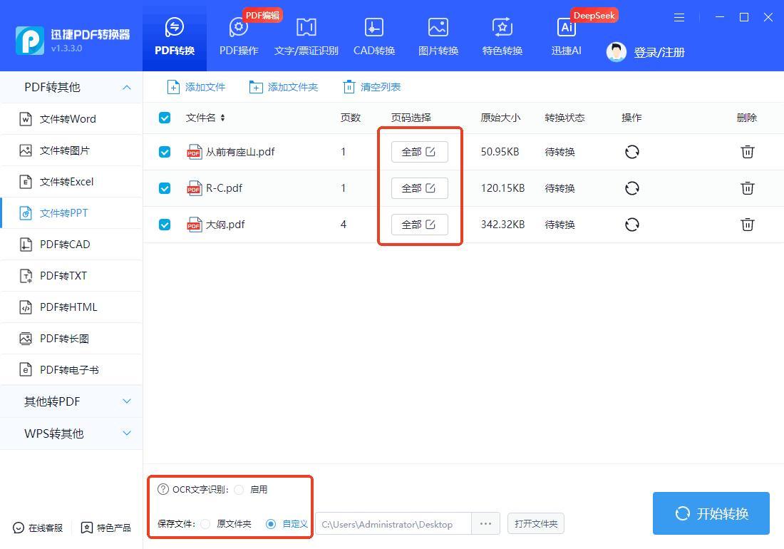 設置PPT爲輸出格式,然後點擊轉換按鈕,等待轉換完成即可。