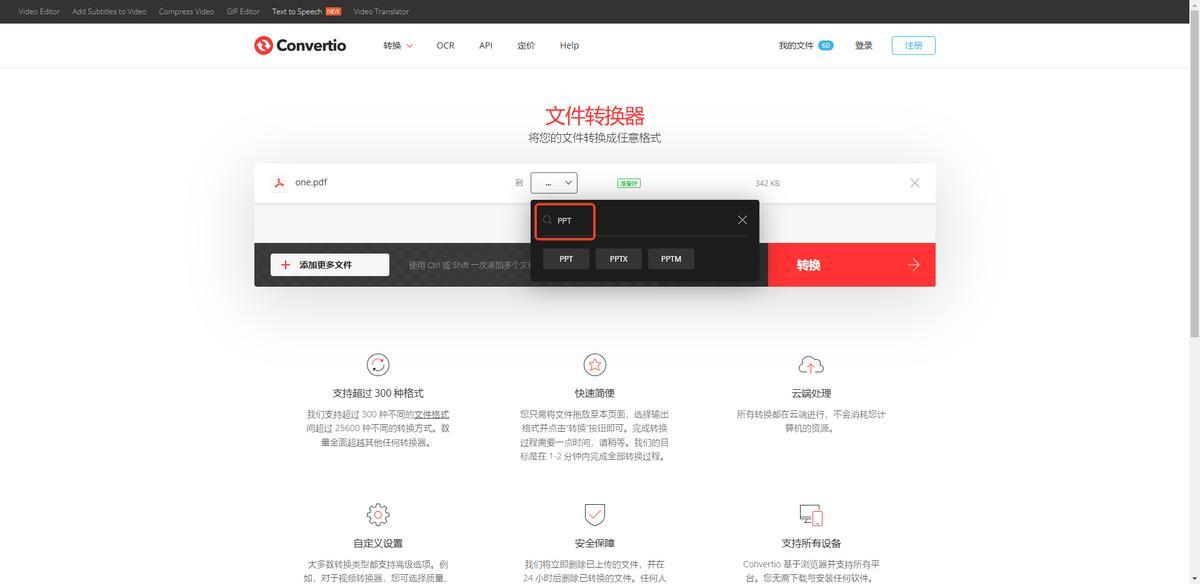 一個在線的文件轉換工具,雖然網站只有一個功能,但使用較爲廣泛,支持PDF、文檔、音頻、視頻等多種格式互轉,也就可以將PDF轉換成PPT格式。