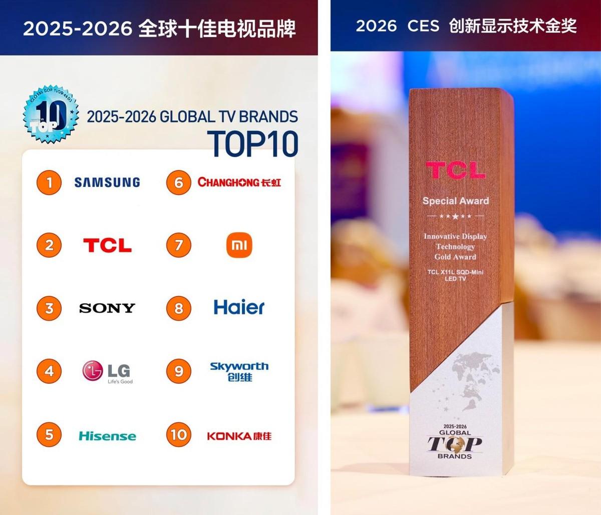 值得一提的是,TCL的技術實力並非自吹自擂,而是得到了國際權威機構的認可。在剛剛結束的CES 2026上,TCL穩居全球十佳電視品牌全球第二、中國第一的寶座,其搭載SQD-Mini LED技術的機皇X11L更是成功斬獲“創新顯示技術金獎”,印證了SQD-Mini LED技術的行業領先地位。