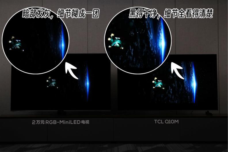 先看對比度維度,得益於SQD-Mini LED“一燈一分區”的核心架構,再搭配TCL的萬象分區技術(通過對電視成像的全鏈路進行技術優化,單個萬象分區的控光效果是普通分區的翻倍),Q10M系列無論在分區數量還是分區質量上都佔有優勢,控光精細度遠超同價位RGB-Mini LED機型;更關鍵的是,它搭載了對比度高達7000:1的超級蝶翼華曜屏,配合精準分區控光,讓暗場純粹、亮場清晰,最終呈現的超高對比度,更是把SQD-Mini LED技術的優勢發揮到極致,遠超RGB-Mini LED電視,帶來拉滿的電影沉浸感。