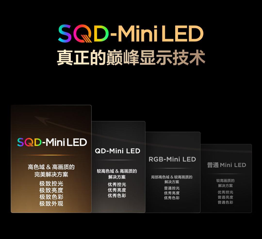 綜合來看,SQD-Mini LED之所以能全面超越RGB-Mini LED,核心就在於其在“畫質鐵三角”——對比度、峯值亮度、色域三個核心維度均實現突破,構建起碾壓級的畫質優勢,展現出遠超同價位機型的實力,這也讓SQD-Mini LED成爲當前高端電視的最優技術方案之一。