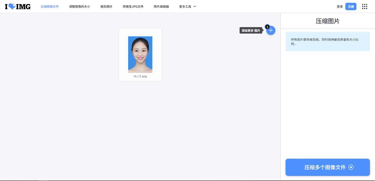 一個不錯的在線圖片壓縮工具,它使用有損壓縮技術,能夠在大幅減小文件體積的同時儘量保持畫質,上傳圖片後會自動壓縮,通常能壓縮60%-80%的體積。雖然它不能直接設置目標KB數,但壓縮率很穩定,對於證件照這種本身不太大的圖片,壓幾次基本就能達到要求。