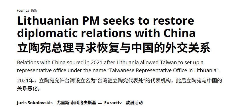 看到西方密集訪華之後,立陶宛說什麼:立陶宛總統和總理都希望能夠儘快前往北京,恢復兩國關係,但中國應當先釋出善意,這樣立陶宛可以採取相應的動作。