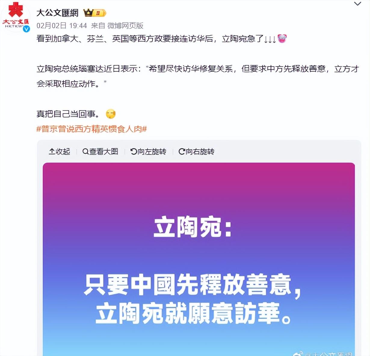 別看立陶宛一次次求和被拒,立陶宛沒有說的是,中國爲啥無視立陶宛,還不是立陶宛在中國紅線問題上瘋狂作妖,拒不改正。