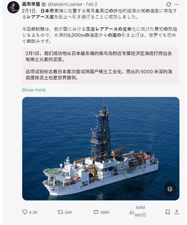 日本說中國的稀土禁令沒用,日本要稀土自由了,因爲他們在6000米的海底挖到了稀土。