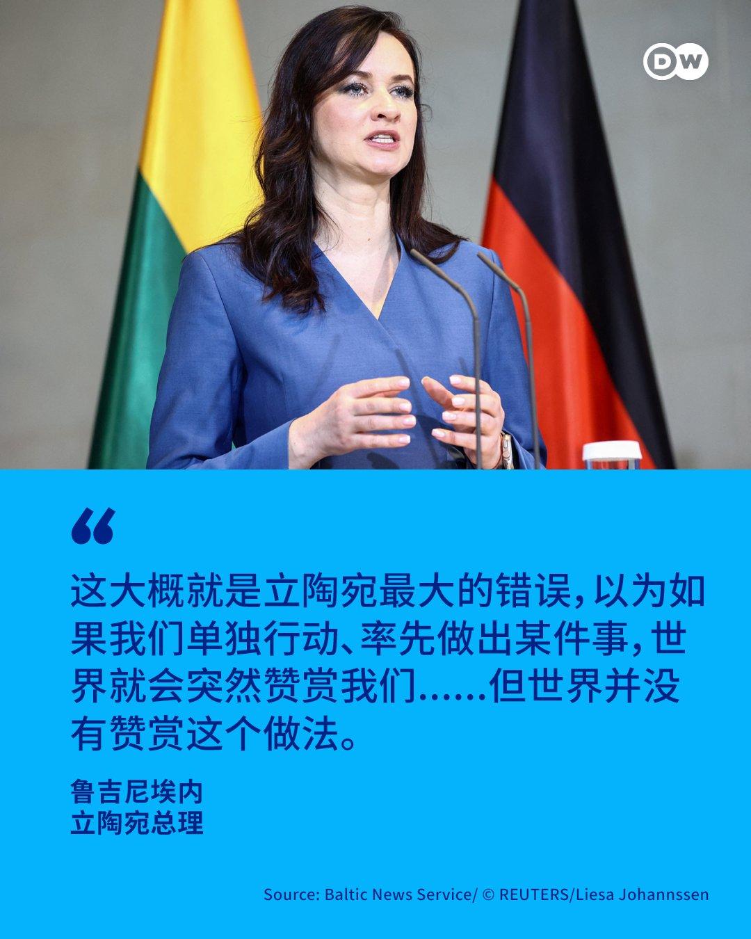 但是立陶宛並沒有當回事,他們咋想的呢?立陶宛新任總理最近在採訪中表示: 我們以爲單獨行動、率先做某事,世界就會讚賞我們,但事實並非如此。