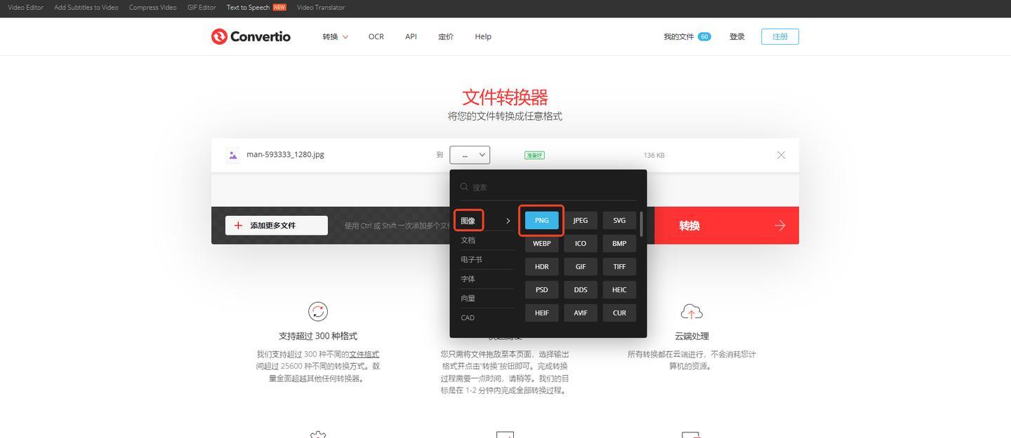 一個在線的文件轉換平臺,支持圖片、文檔、音頻等不同的格式相互轉換,也可以用來將jpg轉爲png,操作也不難,只需要進入網站首頁,點擊按鈕導入jpg圖片,在目標格式欄選擇“圖像”,再點擊“png”,最後點擊轉換按鈕即可。