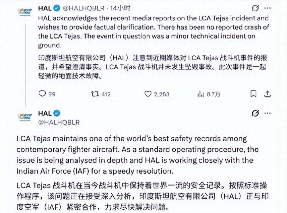 而且,在這起事故發生之前,印度斯坦航空公司董事長就說了,光輝戰機沒有任何問題,其安全記錄堪稱是“全球最佳”。