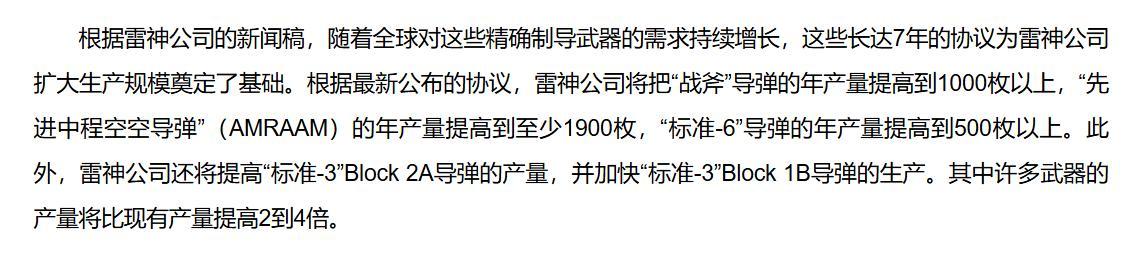 美國計劃將戰斧導彈年產量提升到1000枚以上,“先進中程空空導彈”(AMRAAM)的年產量提高到至少1900枚,“標準-6”導彈的年產量提高到500枚以上,愛國者3的年產量,從600枚提高到2000枚。