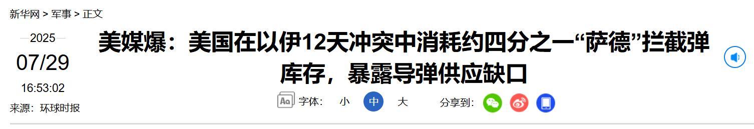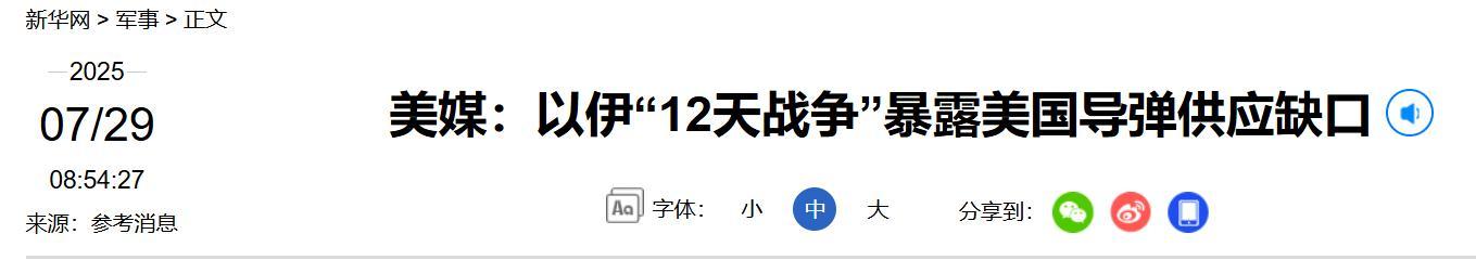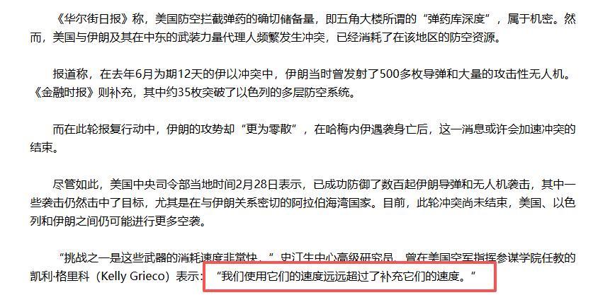 美國也知道自己的短板,所以美國軍方高層一直在提醒特朗普,彈藥不夠用了。還說:武器消耗速度太快,遠遠超過了補充速度。