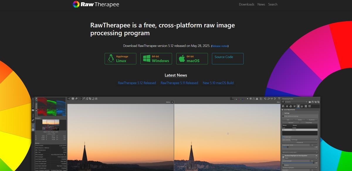 一個專門爲RAW處理而設計的開源軟件,可以在Windows、Mac和Linux三個平臺使用。軟件提供了足夠的調整工具來處理RAW文件,可以進行RAW轉JPG轉換,而且軟件界面佈局合理,工具欄清晰,即便是初學者也能快速上手。