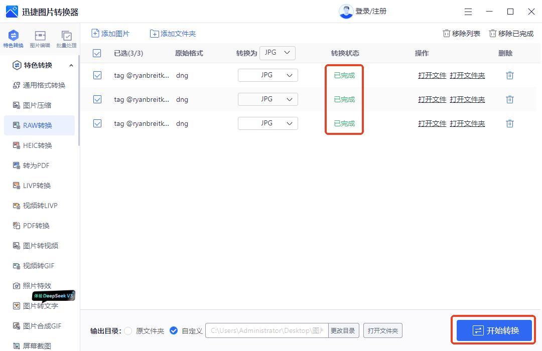1、通過『迅捷圖片轉換器』將raw轉爲JPG