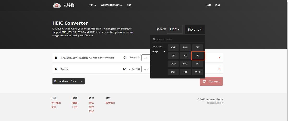 2、通過『CloudConvert』實現批量HEIC轉JPG