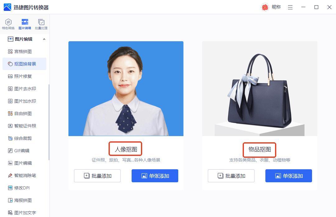 1、通過『迅捷圖片轉換器』進行人像摳圖