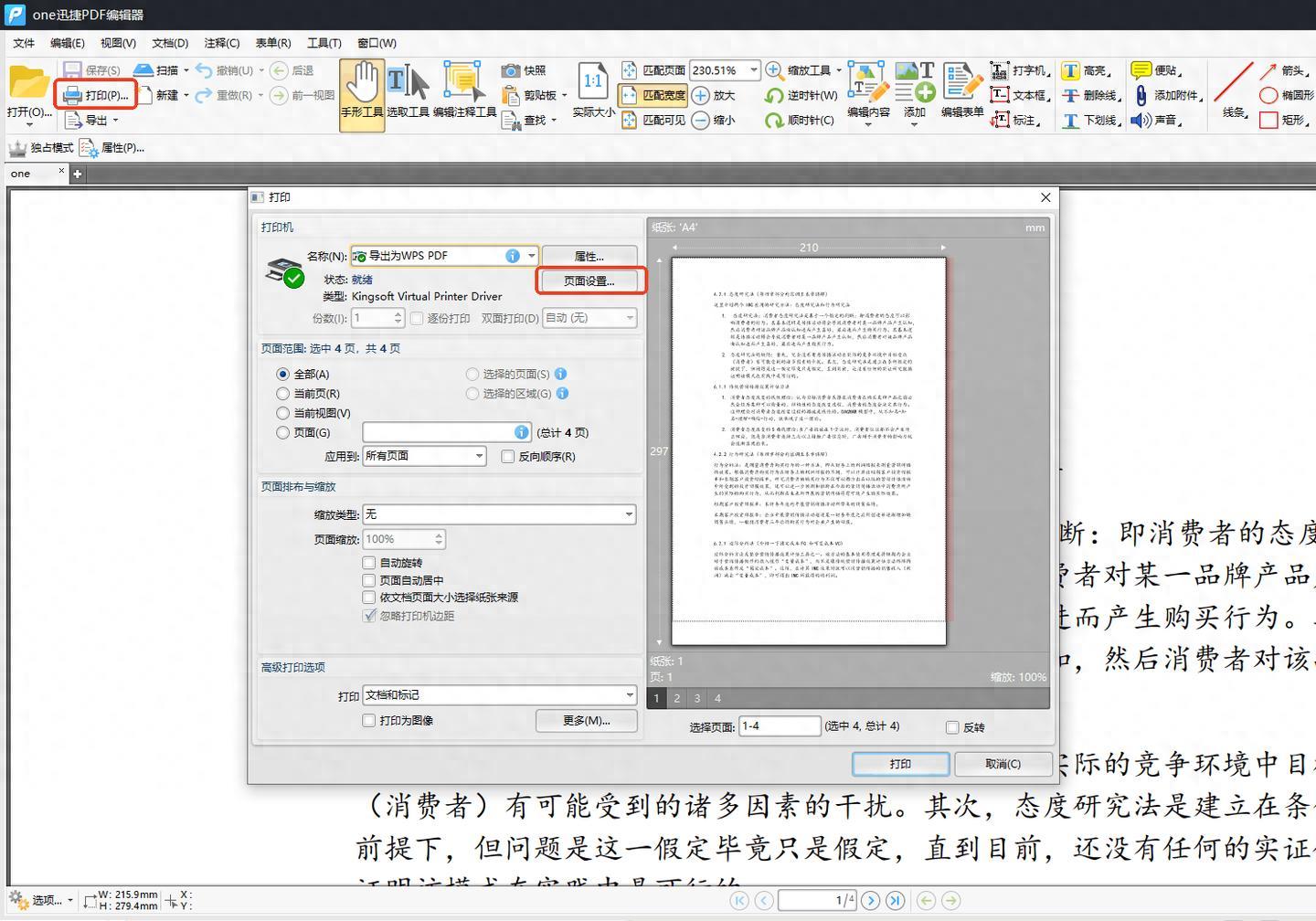 打開PDF,點擊左上角的【打印】,在打印界面選擇【頁面分割】按鈕。