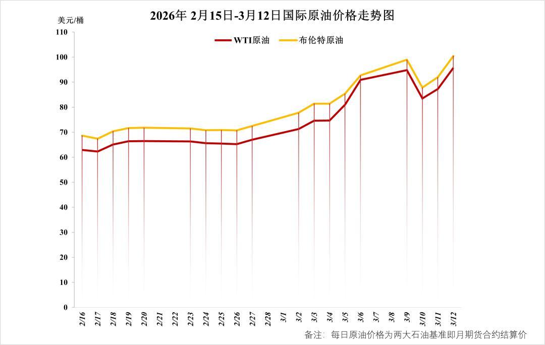中國成品油價格同樣與國際油價掛鉤,但採取“十個工作日一調”的調整機制,波動相對滯後。3月9日,中國發改委發佈消息,次日起國內92號汽油、95號汽油和0號柴油分別上調0.55元、0.58元、0.57元。下一次調價窗口則將在3月23日24時開啓。
