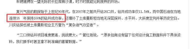 我們幫他們升級蘇聯時期的老舊設備,幫他們提升氣田採收率,解決高含硫氣田開採難題,曾經有外國鑽井公司在這裏開採天然氣,結果,6年打了5口井,3口報廢、1口井噴失控。而中國,在7個月內成功鑽出3口井。在2007年之前共開鑽26口井,鑽井成功率僅11.54%,而我國在當地,連續16年保持100%鑽井成功率。