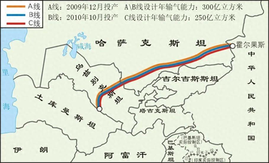 中國中亞輸氣管道連接中國-土庫曼斯坦,烏茲別克斯坦,全長約1800公里,天然氣從土庫曼斯坦沙漠深處出發,48小時就可以到達我國新疆,然後再通過西氣東輸管道,運到千家萬戶。每年向中國輸氣超400億立方米,滿足5億人17年的用氣,攻克 7 級地震帶,連續安全運行超 4700 天!更狠的是,全程走陸上線路,不經海路,不管中東局勢如何,這條能源動脈都能穩定運行。但是,想修這條能源通道,一般國家還真沒這個實力。