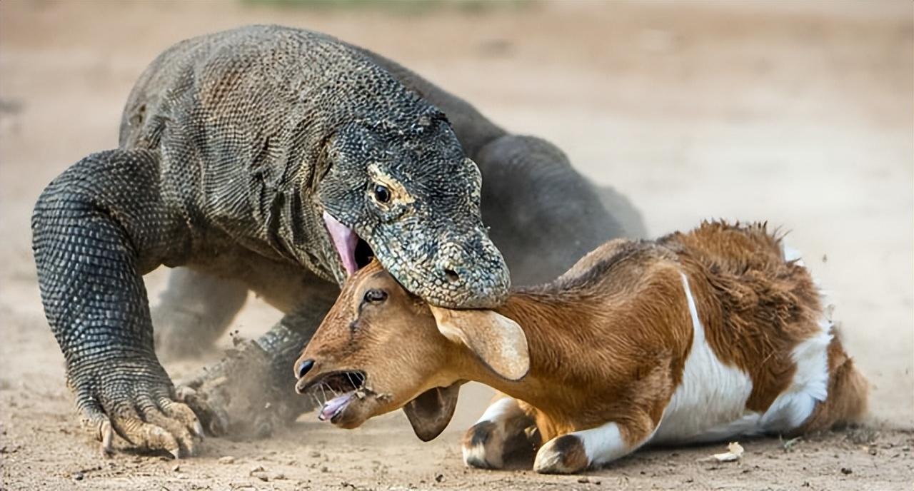 但畢竟在小島上,資源有限。光靠“外卷”擴充食譜還不夠,科莫多巨蜥還得不斷進行“內卷”,最終打造了自己捕食的“三板斧”。三招下來,島嶼上沒有任何生物能在它面前逃脫。