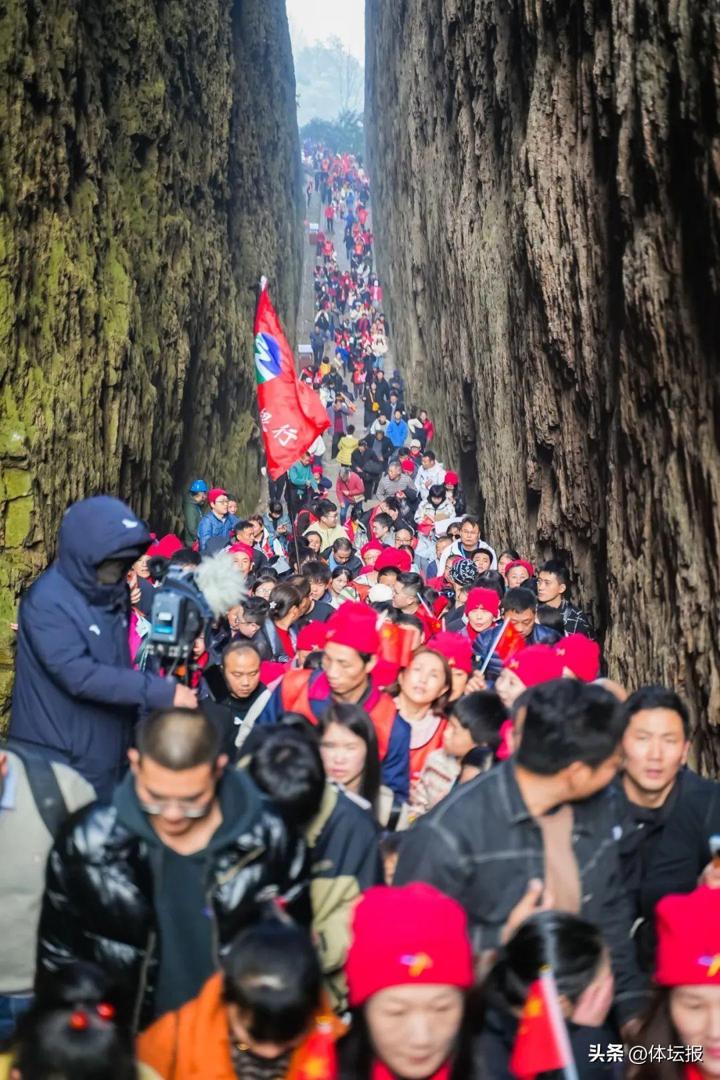 江山披錦繡,龍騰迎新年。隨着發令笛聲響起,10000餘名登山愛好者從江郎山風景區出發,拾級而上、登高望遠、祈願新年,以積極向上的精神表達了“步步登高、天天健身、人人進步”的美好願望,共創共享美好生活。