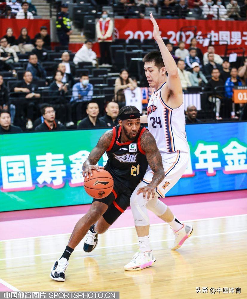 中國體育訊 1月2日晚,在2023-2024賽季CBA常規賽第25輪的一場比賽中,客場作戰的上海久事以112比111險勝深圳馬可波羅。(中國體育圖片 黃志 攝)