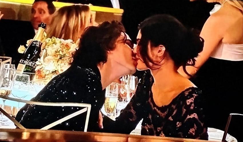 近日,卡戴珊家族小妹凱莉-詹娜盛裝打扮,與男友“甜茶”提莫西-查拉梅出席金球獎頒獎現場,兩人坐在一起各種秀恩愛,甚至當着鏡頭,大方接吻,高能撒糖。