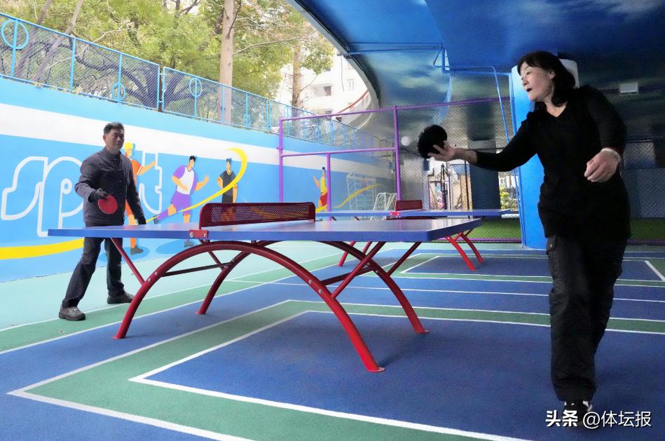 公園位於拱墅區長慶街道,周圍居民樓林立,有不少住戶。雖然開張才半個月不到,不少附近居民已經來這鍛鍊多日了。下午兩點多,場地開門不久,64歲的浙大御蹕社區居民鍾愛娟便和丈夫一起來到乒乓球場地,興致勃勃地打起球來。