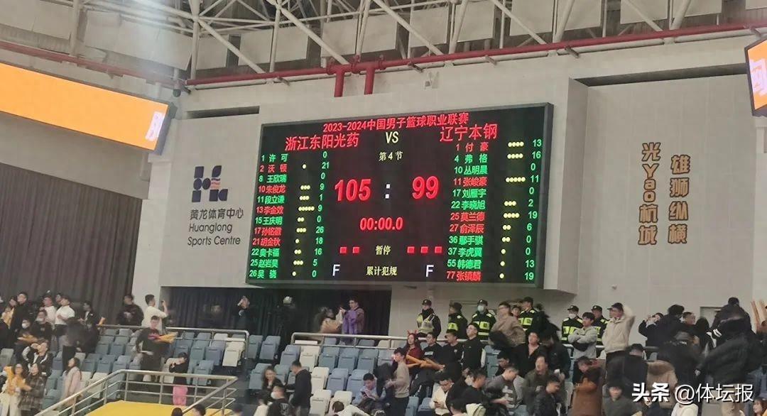 1月9日,浙江東陽光藥繼續坐鎮主場,迎來與遼寧本鋼的三番戰。最終,東陽光藥105:99戰勝遼寧,實現了本賽季對對手的“三殺”。此役,東陽光藥四人得分上雙,孫銘徽砍下全場最高的26分9助攻,沃頓貢獻21分,胡金秋、奧卡福各進賬18分和16分。遼寧六人得分上雙,莫蘭德和張鎮麟得到全隊最高的19分。