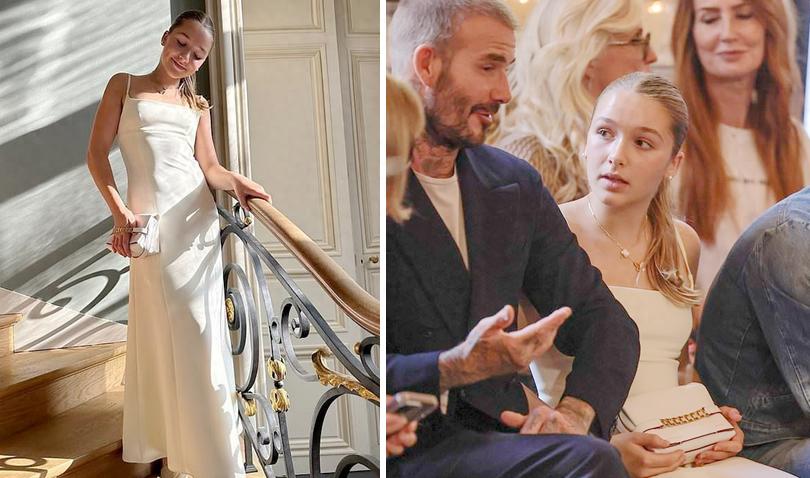 貝克漢姆父女看秀,小七穿白裙好美!貝嫂爲她設計,12歲好優雅