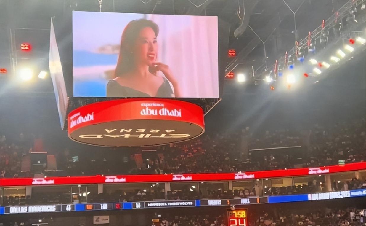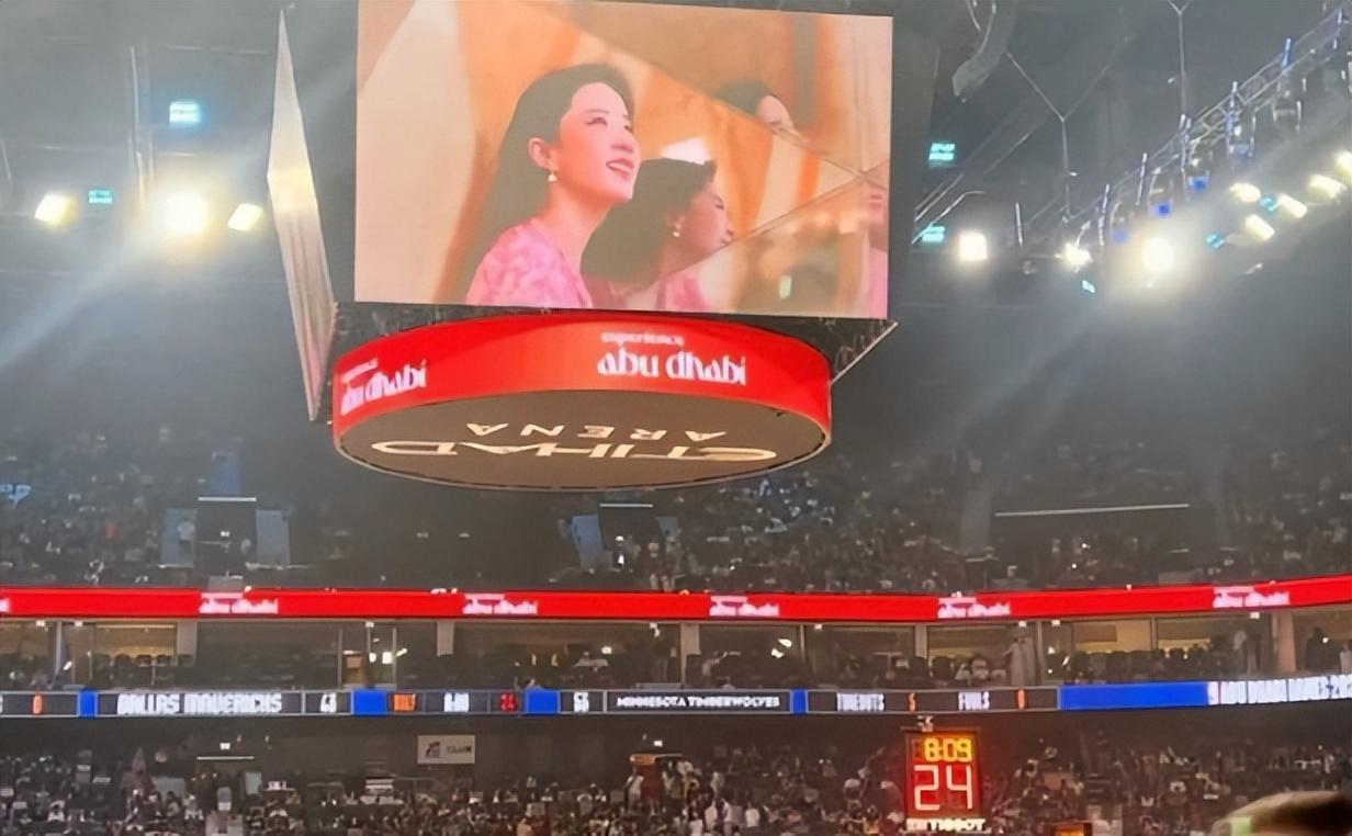 劉亦菲現身NBA巴黎賽,拍籃球大片!亮相現場大屏幕,太美了
