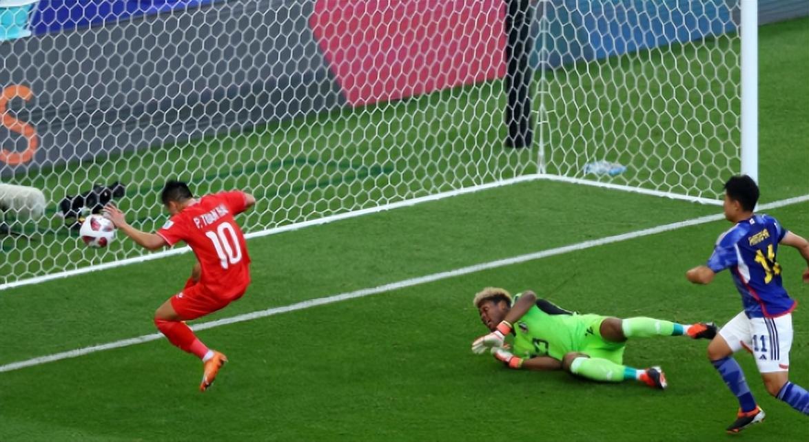 此役,日本隊進球來得很早,僅僅踢了第11分鐘,場上僵局就被打破了,在越南隊的禁區線上,菅原由勢打門後被門將擋出,拍馬趕到的南野拓實跟進補射破門,不過5分鐘之後,越南隊就通過角球機會,由阮廷北完成一記神奇的頭球。比賽第33分鐘,讓人意外的一幕發生,日本門將鈴木彩豔撲救失誤,範俊海補射破門,越南0比1到2比1居然反超日本了,如此鬥志與進攻實力,着實讓中國球迷眼紅啊。