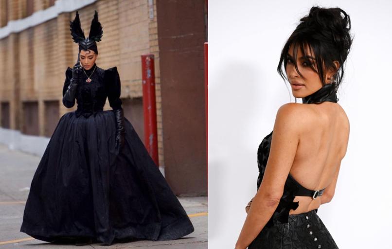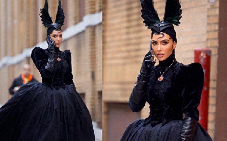 金卡戴珊女巫造型曝光!一身黑太酷了,氣場拉滿,秀極致臀腰比