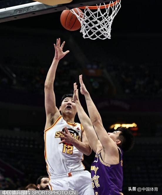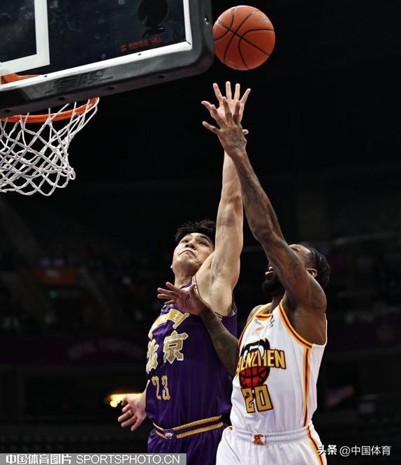 深圳馬可波羅隊盧鵬羽籃下進攻被北京控股隊廖三寧封蓋