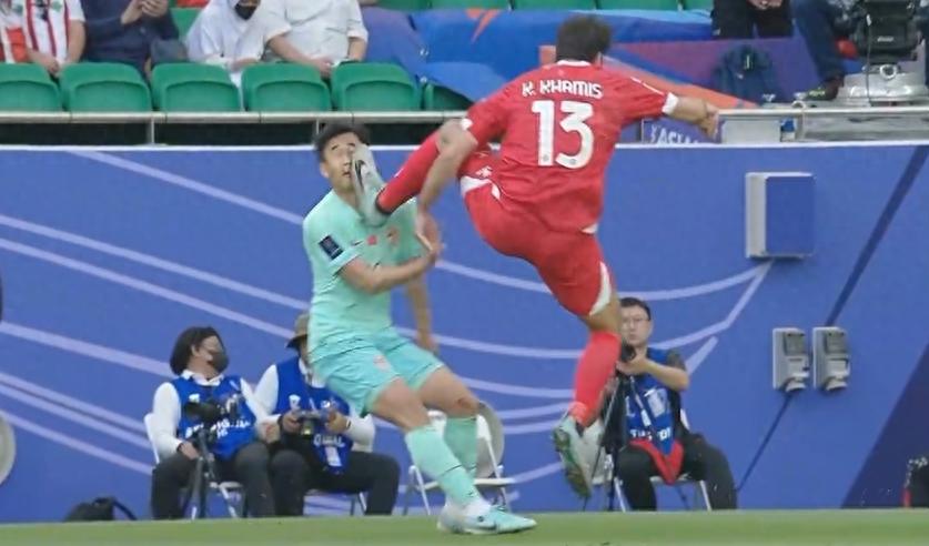 不公平!黎巴嫩爆頭一腳,韓國裁判無視,張玉寧危險動作險染紅