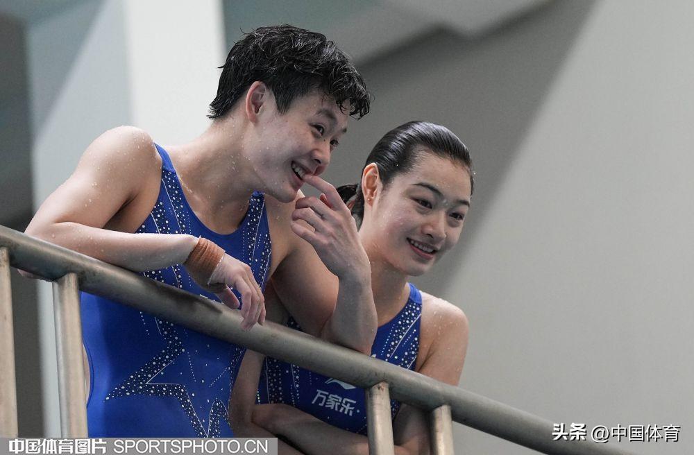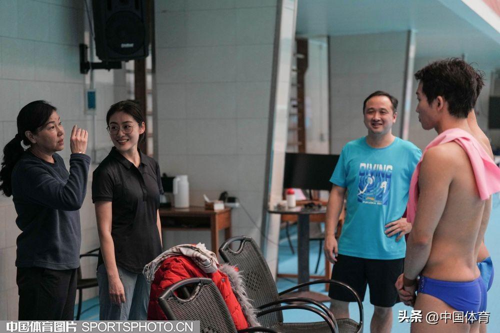 國家跳水隊教練員陳若琳爲隊員們的表現點贊(左)
