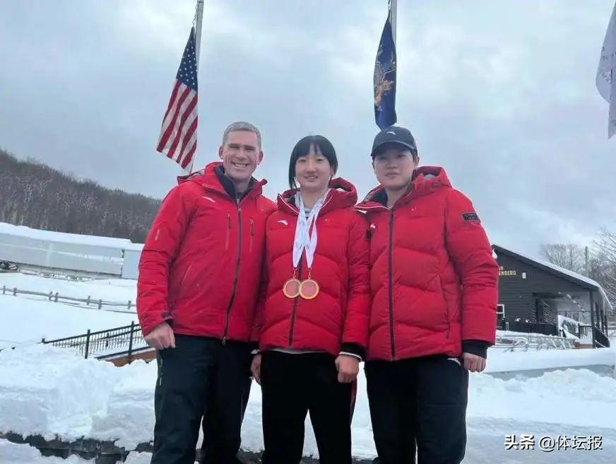 梁雨欣(中)在冬青奧會系列賽美國站獲得女子鋼架雪車冠軍(圖源:浙江省新昌中學)